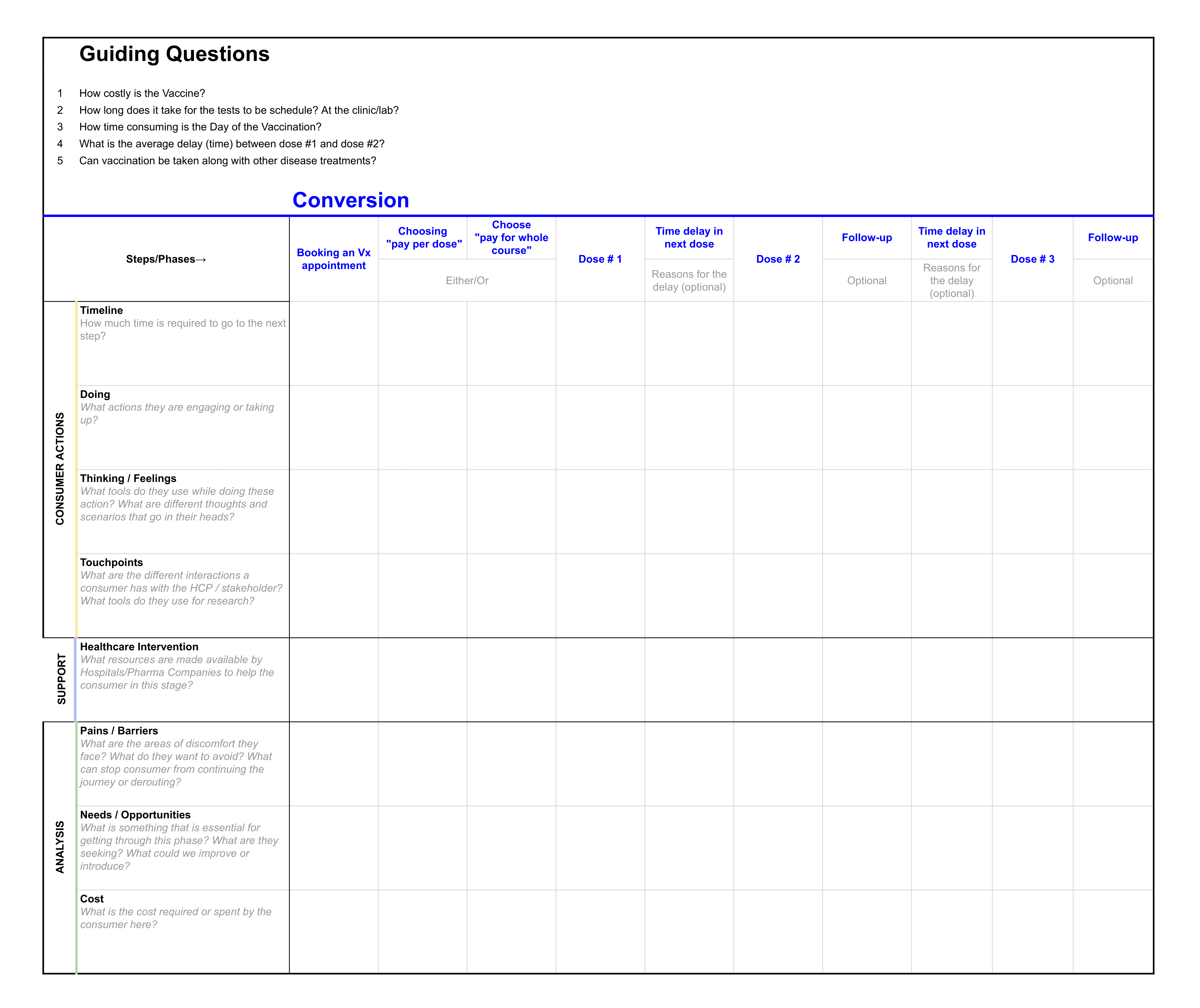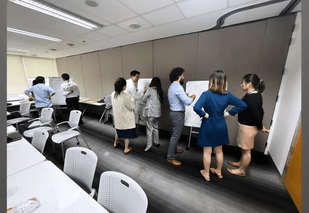 For onsite workshops, we printed A1 rolls of these Excel sheets and pinned them across walls.