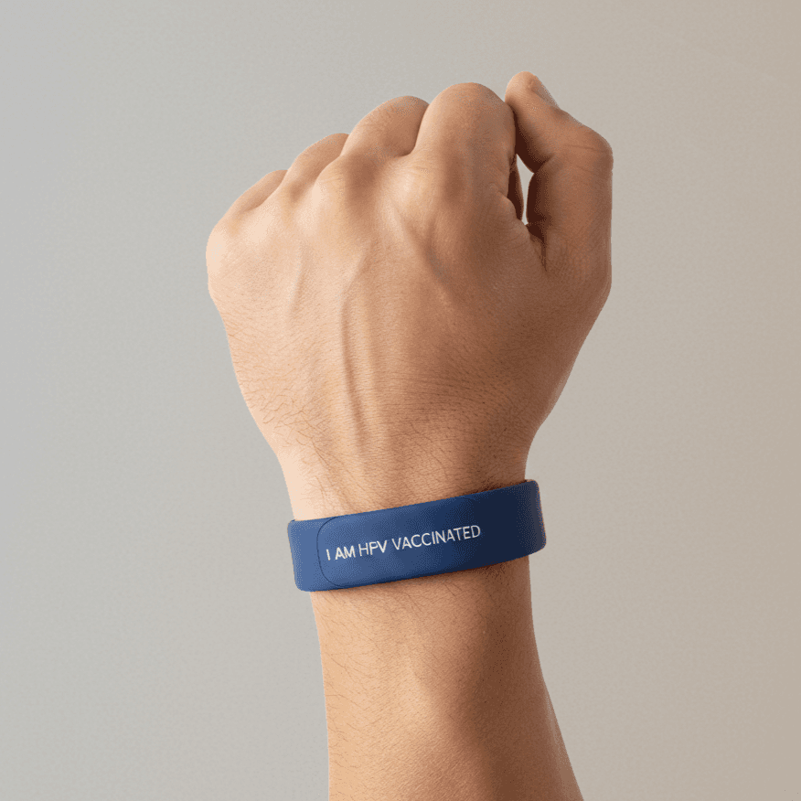 Introduce branded HPV wristbands or wraps. Use social signaling to build urgency. Create visible, shareable cues that brings vaccination into public norm.
