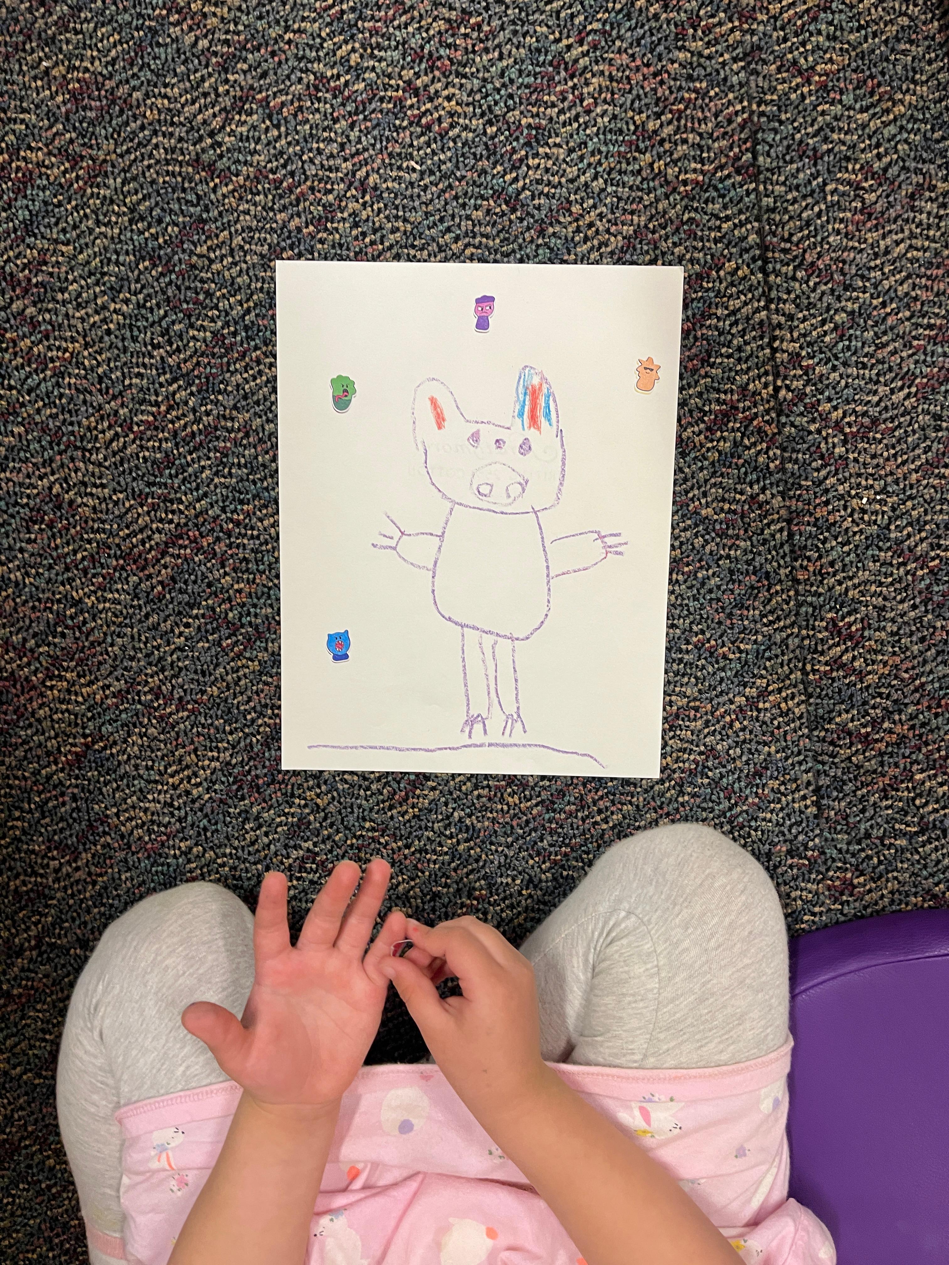 Ria added all her stickers on top her drawing because it made Peppa Pig look more "beautiful".
