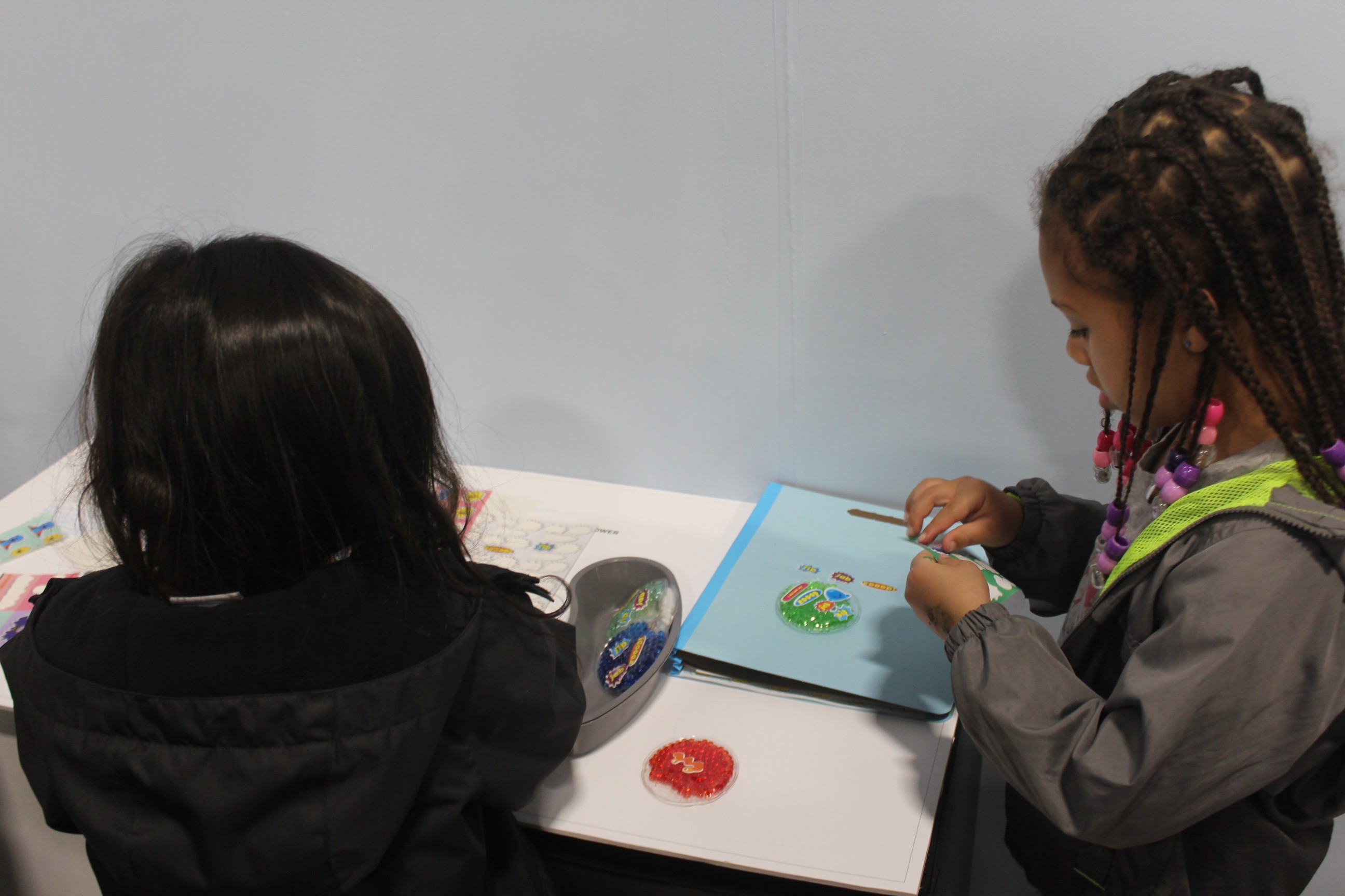 I noticed in user testing that children put these stickers on their book or on the art they were drawing. They kept matching the colours on their stickers with other objects around as well.