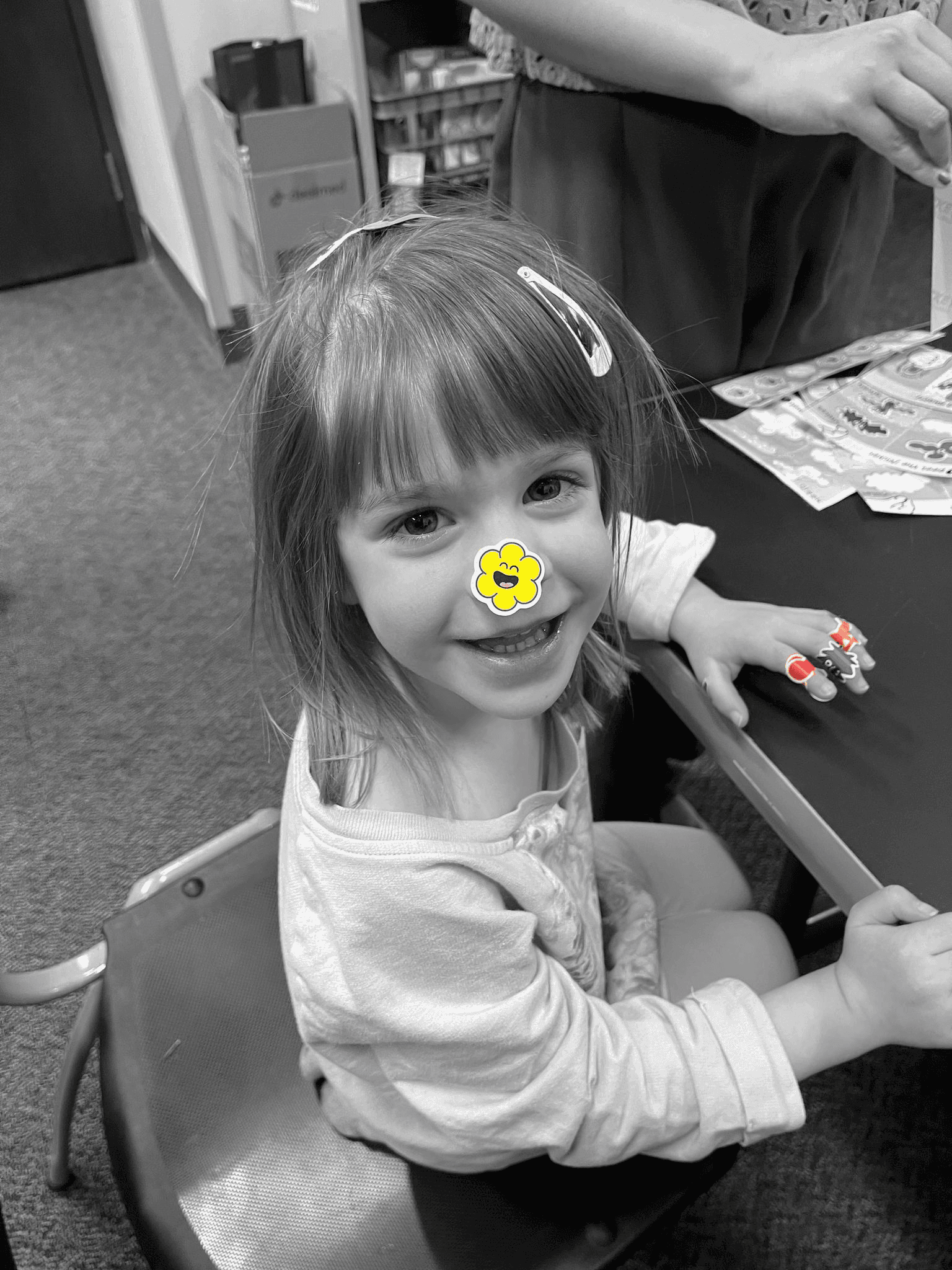 I shifted to finger stickers. Clinics already give children stickers, so this fit naturally into existing workflows.