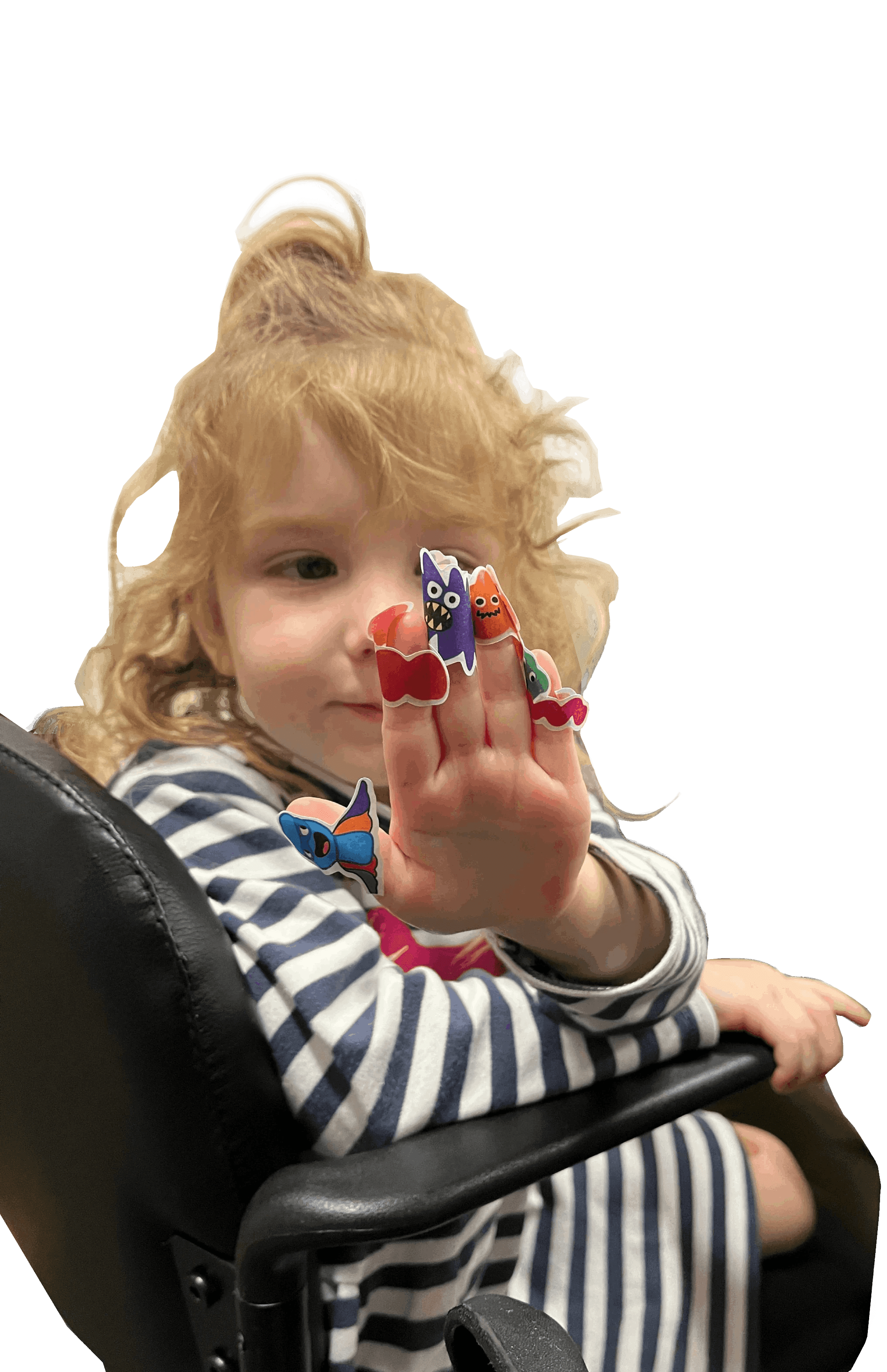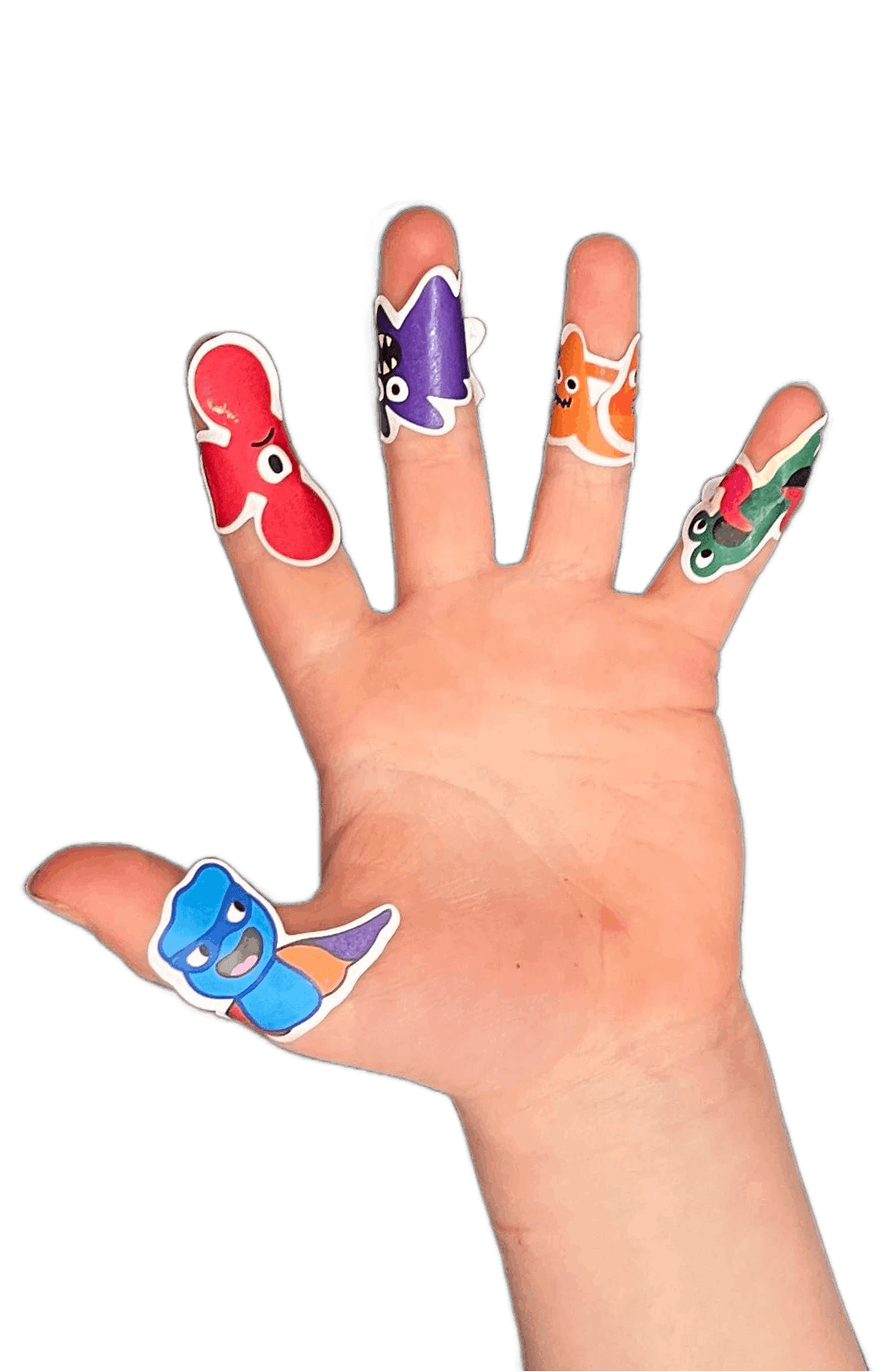 I redesigned the monsters with wider bodies and longer arms that could “hug” the child’s finger for better grip and durability.